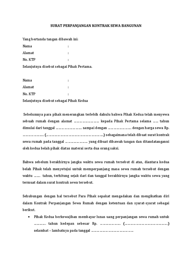 Contoh Surat Perpanjangan Kontrak Sewa Rumah Pdf